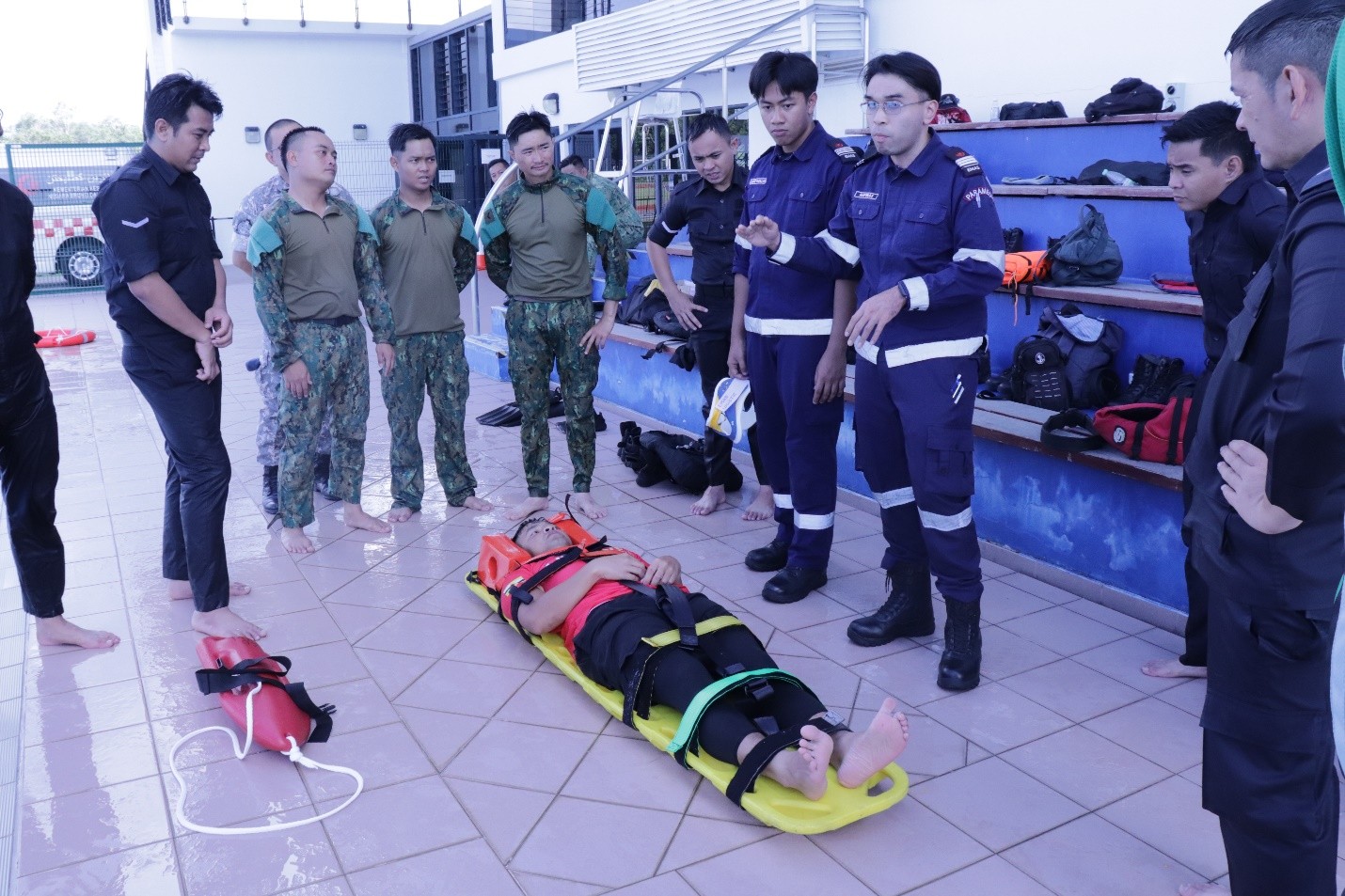 | JOINT FORCES ROYAL BRUNEI ARMED FORCES ORGANISED A BASIC WATER RESCUE AND LIFE SAVER WORKSHOP | RIMBA, Thursday, 06 November 2025 – The Joint Force Royal Brunei Armed Forces (JF RBAF) has coordinated the conduct of a Basic Water Rescue and Life Saver workshop as part of preparations for The Brunei Half Marathon 2025. The workshop participants were from the Combat Boat Squadron of Royal Brunei Land Force (CBS RBLF), Naval Surface Action Group of the Royal Brunei Navy (NAVSAG RBN), Marine Police of the Royal Brunei Police Forces (POLMAR), and the Fire and Rescue Department. The training was held at the Swimming Pool Complex, Royal Brunei Air Force Base, Rimba.