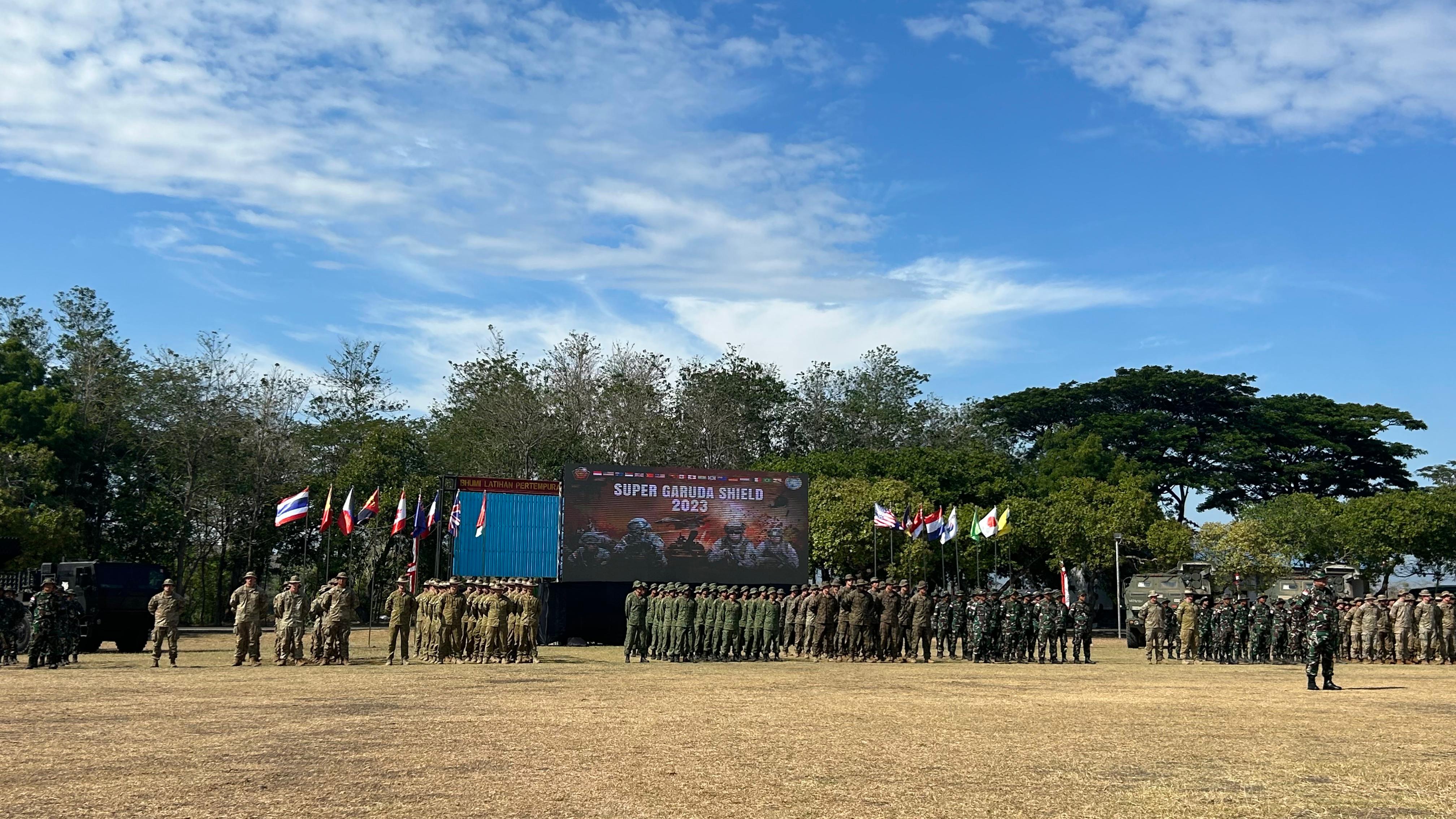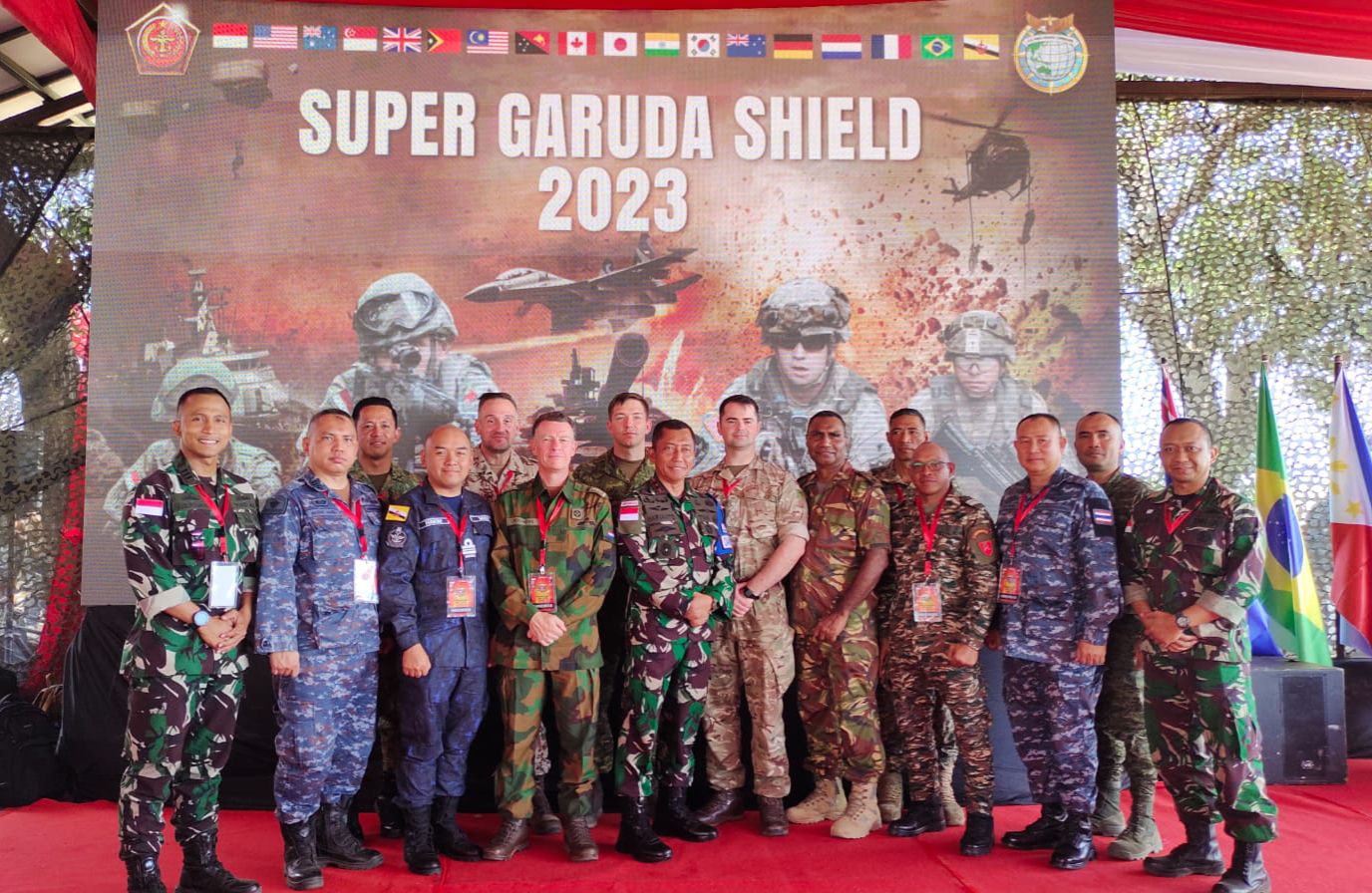 BANYUWANGI, REPUBLIK INDONESIA, Rabu, 13 September 2023 - Angkatan Bersenjata Diraja Brunei (ABDB) telah mengambil bahagian sebagai pemerhati dalam Latihan Bersama Super Garuda Shield 2023 Multinasional dari 08 hingga 13 September 2023. Latihan ini merupakan acara tahunan kerjasama keselamatan teater antara Tentara Nasional Indonesia (TNI) dan United States Indo-Pacific Command ~(USINDOPACOM, serta turut serta dalam latihan ini adalah Jepun, Australia, Republik Singapura, United Kingdom, dan Perancis. Selain itu, beberapa negara turut serta sebagai pemerhati, termasuk Brunei Darussalam, Brazil, Kanada, Jerman, Belanda, New Zealand, Papua New Guinea, Republik Filipina, Republik Korea, Thailand, dan Timor Leste.