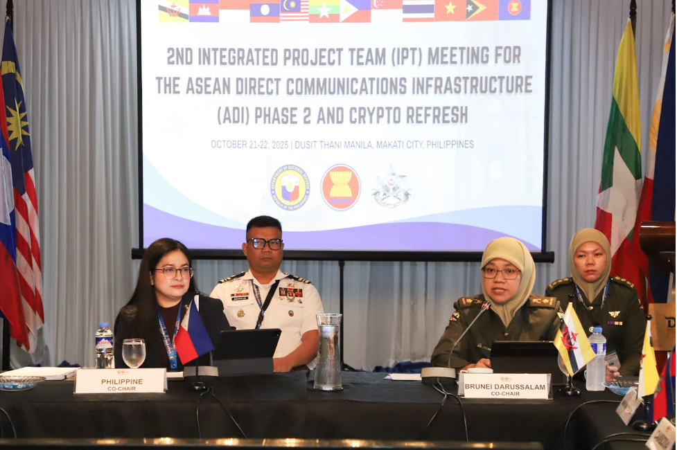 REPUBLIK FILIPINA, 21 OKTOBER 2025 – Pegawai Turus J6 Perhubungan Sistem Maklumat, Angkatan Bersama, Angkatan Bersenjata Diraja Brunei (AB ABDB), Yang Mulia Leftenan Kolonel Caslindawati binti Samil dan diiringi oleh Pegawai Turus 3, J6 Perhubungan Sistem Maklumat, AB ABDB dan Nur Sabiqah binti Haji Rosli, Pegawai Penyelidik, Pusat Penyelidikan dan Perkembangan Sains dan Teknologi Kementerian Pertahanan telah menghadiri 2nd Integrated Project Team Meeting For Phase 2nd Of Asean Direct Communication Infrastructure (ADI) yang berlangsung dari 21 hingga 22 Oktober 2025 di Manila Republik Filipina. Mesyuarat ini telah dipengerusikan bersama oleh Negara Brunei Darussalam dan Republik Filipina.