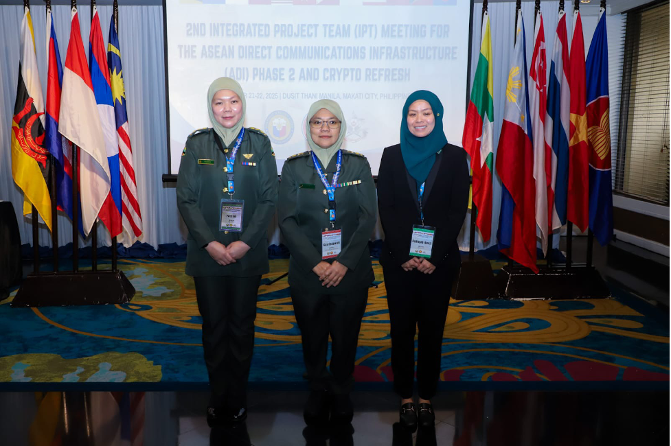 REPUBLIC OF PHILIPPINES, 21 OCTOBER 2025 – Staff Officer Grade 1, J6 Communication & Information System from the Joint Force, Royal Brunei Armed Forces (RBAF), Lieutenant Colonel Caslindawati binti Samil accompanied by Staff Officer Grade 3, J6 Communication & Information System, Joint Force RBAF, Captain Fauziah binti Sabli and Nur Sabiqah binti Haji Rosli, Research Officer, Centre of Science and Technology Research Development Ministry of Defence (CSTRAD MINDEF) participated in 2nd Integrated Project Team Meeting for Phase 2nd of ASEAN Direct Communication Infrastructure (ADI) held in Manila, Republic of the Philippines from 21 to 22 October 2025. The meeting was co-chaired by Brunei Darussalam and Republic of the Philippines.