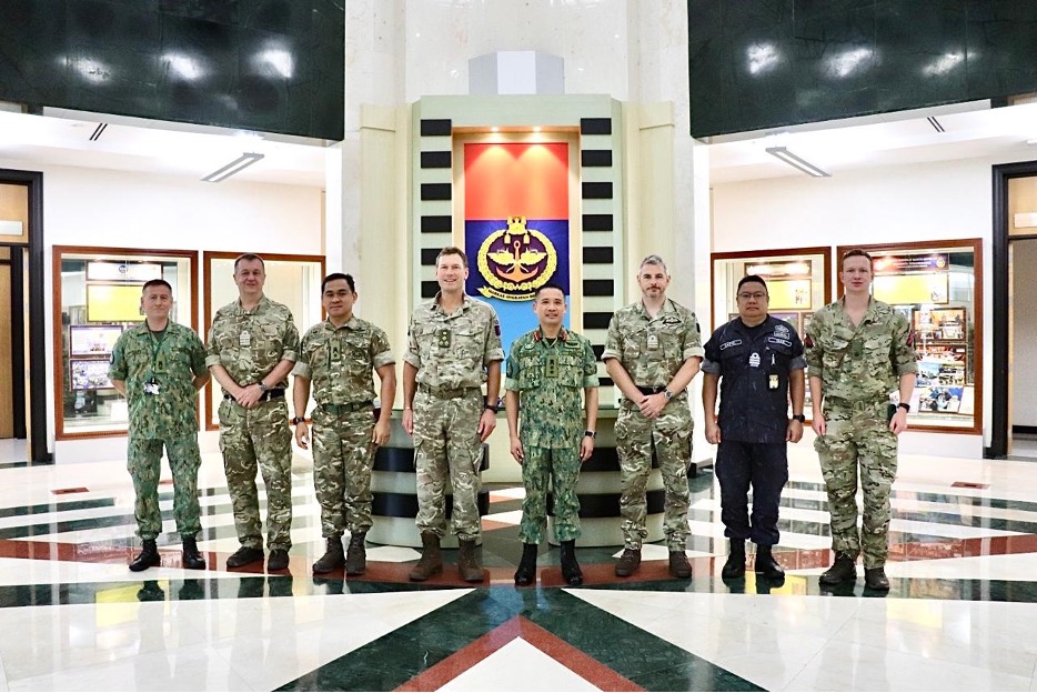 BOLKIAH GARRISON, Monday, 27 October 2025 – Colonel Pengiran Noor Rumaizi bin Pengiran Othman, Joint Force Commander, Royal Brunei Armed Forces (RBAF) received a courtesy call from Brigadier General Daniel Bruce Duff, Commander Joint Forces Operations (CJFO) at Bolkiah Garrison. Also present at the courtesy call were Captain Jonathan Caple, Royal Navy, UK Defence Adviser to Brunei Darussalam, as well as the Chief of Staff of Joint Force, RBAF and Staff Officer Grade 1 J3 Navy, Joint Force RBAF.