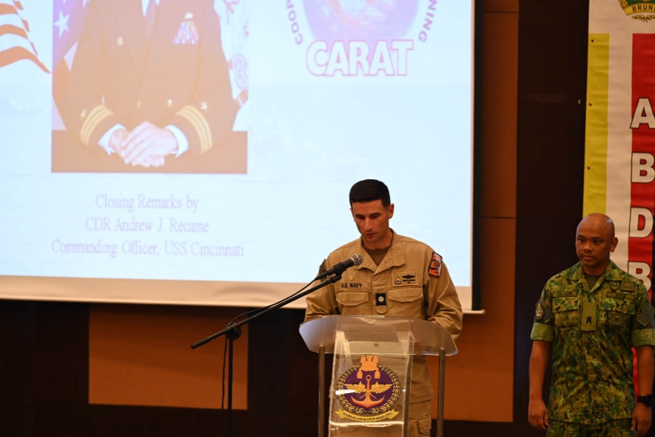 During the ceremony, closing addresses were delivered by Colonel Pengiran Noor Rumaizi bin Pengiran Othman, Joint Force Commander RBAF and Commander Andrew J. Recame, Commanding Officer, USS Cincinnati. In their remarks, both highlighted the enduring partnership between Brunei Darussalam and the United States. The Joint Force Commander RBAF further highlighted that the exercise supports Brunei’s strategic defence priorities outlined in the Defence White Paper 2021 and Wawasan Brunei 2035, while reflecting shared values of cooperation, mutual respect, and a common commitment to a safer region.