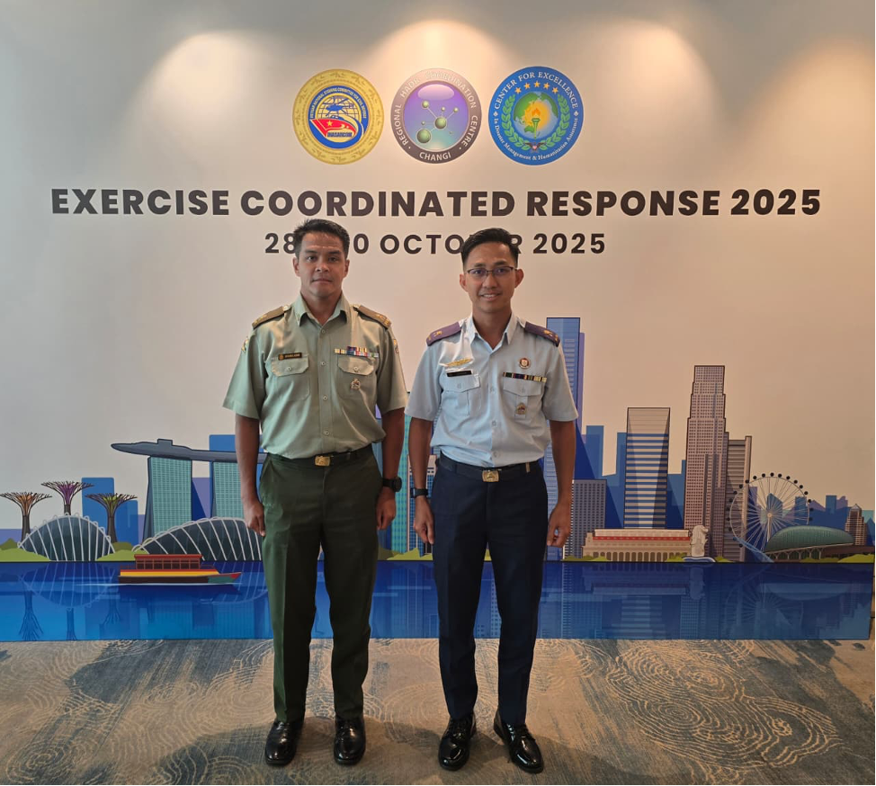 REPUBLIC OF SINGAPORE, Thursday, 30 Oktober 2025 – Two officers from Royal Brunei Armed Forces (RBAF) participated in the Top Table Exercise (TTX) for Exercise Coordinated Response (Ex COORES) 2025. The exercise was held for three days at the Grand Copthorne Waterfront Hotel, Republic of Singapore from 28th to 30th October 2025. Ex COORES 2025 is a multinational Humanitarian Assistance and Disaster Relief (HADR) exercise co-organised by the Changi Regional Humanitarian Coordination Centre (RHCC), the US Indo-Pacific Command's Center for Excellence in Disaster Management and Humanitarian Assistance (CFE-DM), and the Vietnam National Steering Committee for Civil Defense (VINASARCOM).
