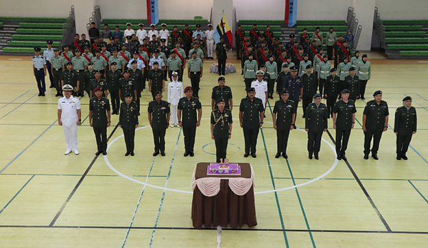 Present as the Guest of Honour was Yang Mulia Colonel Pengiran Noor Rumaizi bin Pengiran Othman, the Joint Force Commander. The parade was led by Major Haji Muhammad Alihassan bin Haji Japar, Staff Officer Grade 2 Doctrine (Land), Joint Doctrine and Warfare Centre. The ceremony began with a recitation of Surah Al-Fatihah led by Captain Abdul Mu'iz Azizi bin Zulkifli, Staff Officer Grade 3, Religious Development and Mosque/Surau, Religious Department, RBAF, followed by the reciting of the Joint Force Pledge led by Lieutenant Mohammad Hadi Samsol bin Alex Qurnaine, Staff Officer Grade 3 Intelligence (J2). Also present during the parade ceremony were the Chief of Staff, Senior Officers, Officers and personnel of JF RBAF.