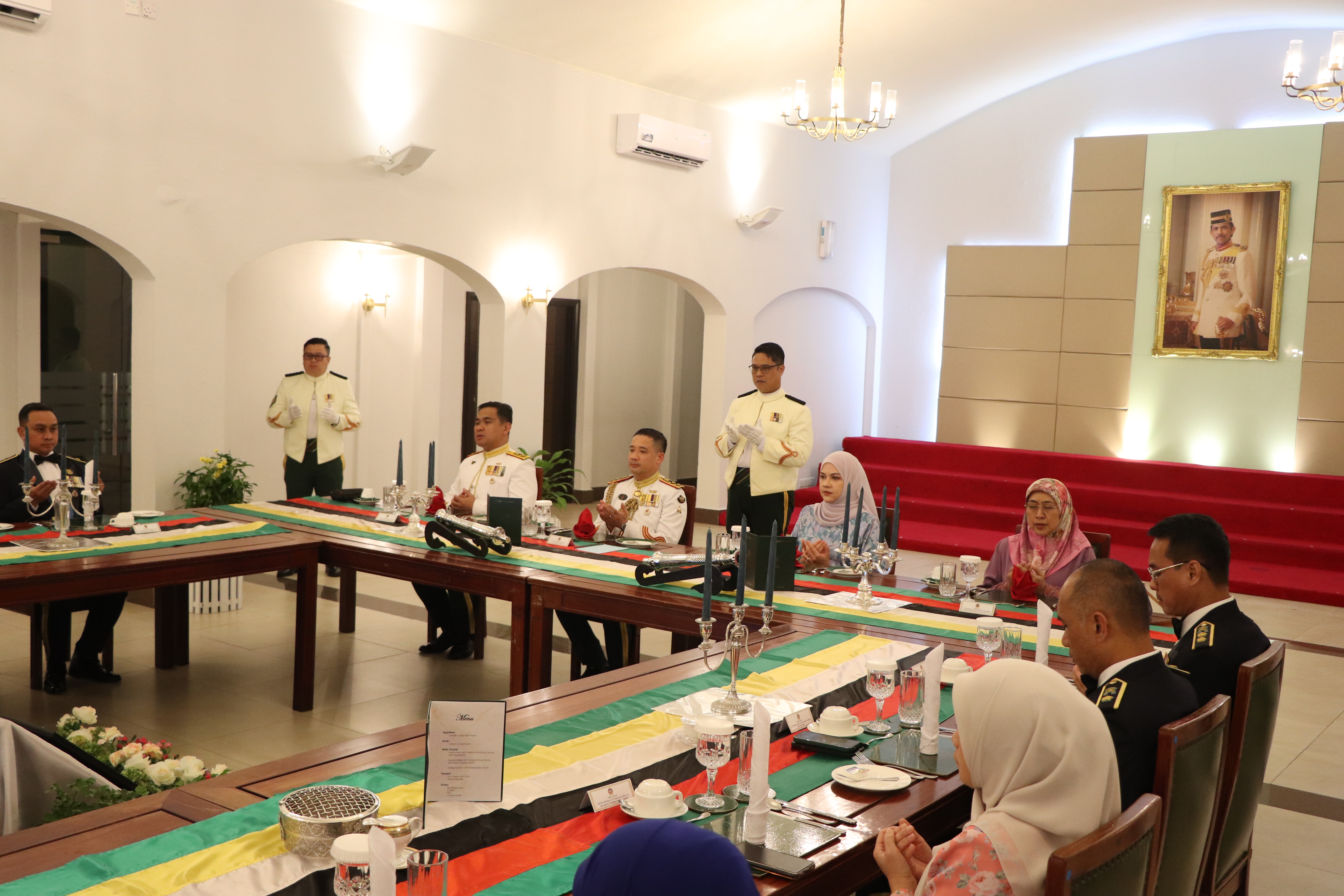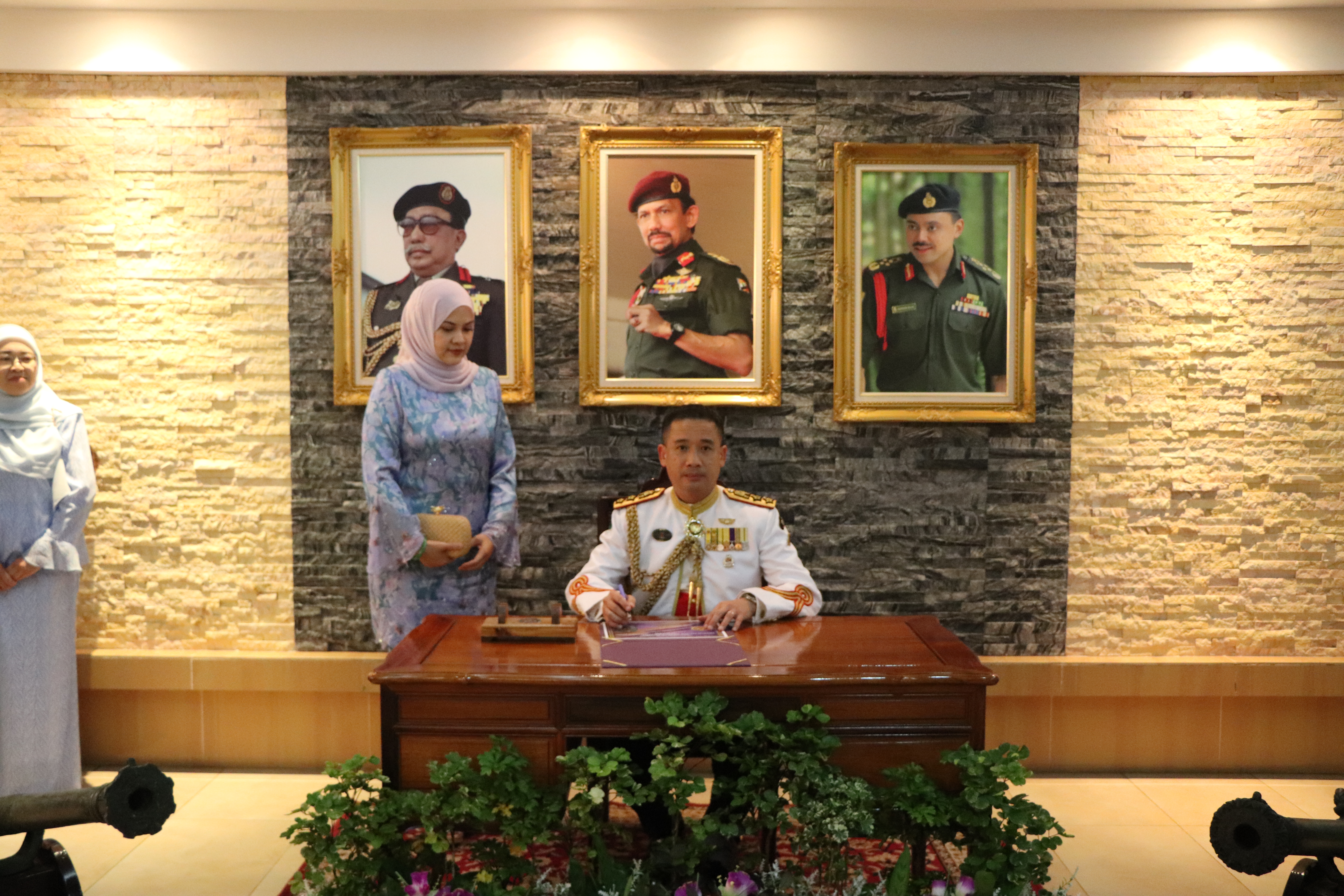 The evening was enlivened by musical performances from the RBAF Band, the 1st Battalion Royal Brunei Land Force Band (RBLF) Platoon, and the 2nd Battalion RBLF Pipes and Drums Platoon. The ceremony concluded with the signing of a commemorative parchment.