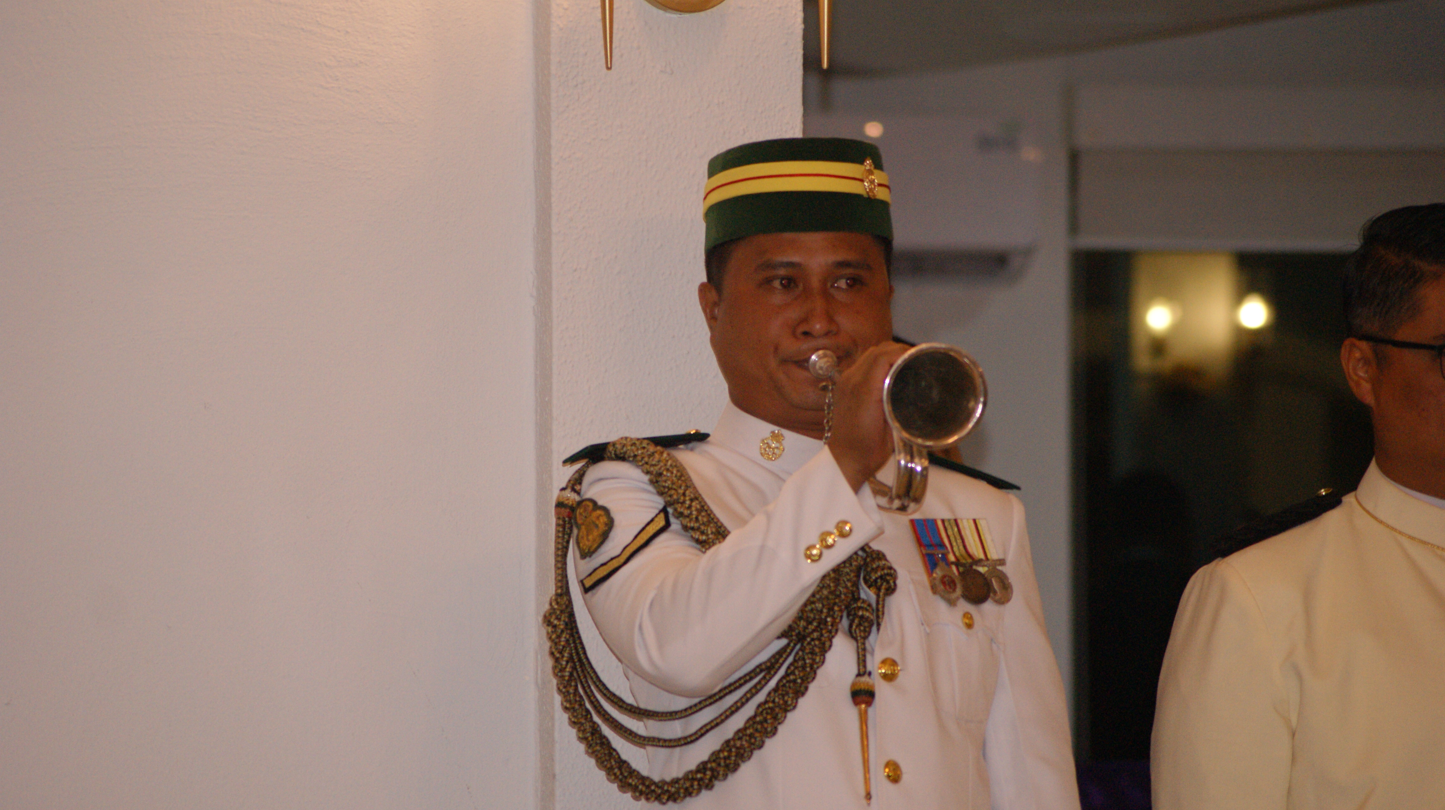 Majlis dimeriahkan dengan iringan muzik daripada Pasukan Pancaragam ABDB, Platun Pancaragam Batalion Pertama Tentera Darat Diraja Brunei (1Bn TDDB) dan Platun Serunai dan Tambur Batalion Kedua TDDB (2Bn TDDB) dan seterusnya diakhiri dengan penandatanganan lembaran kenangan.