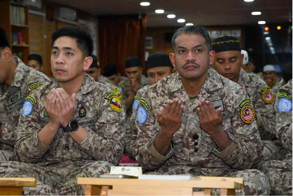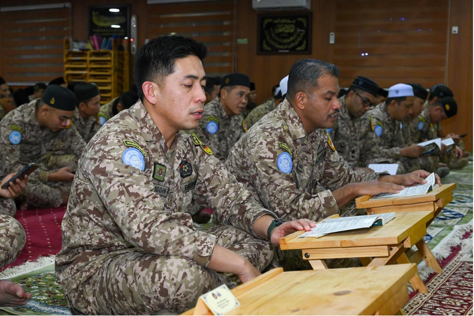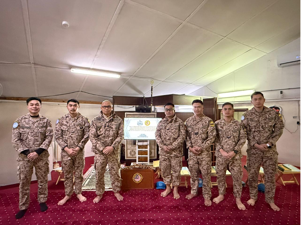 In solidarity with the religious event held in Brunei, Muslim members of the Malaysian Battalion (MALBATT) 850-13, currently carrying out the United Nations Interim Force in Lebanon (UNIFIL) peacekeeping mission, also joined in prayer and supplication. The MALBATT 850-13 contingent, comprising personnel from the Malaysian Armed Forces (MAF) and the Royal Brunei Armed Forces (RBAF), conducted the Sunat Hajat prayers, recitation of Surah Yasin, and special supplication in congregation at Kawkaba Mosque, Camp Marakah, and Al Mujahadah Mosque, Camp Tibnine, in southern Lebanon.