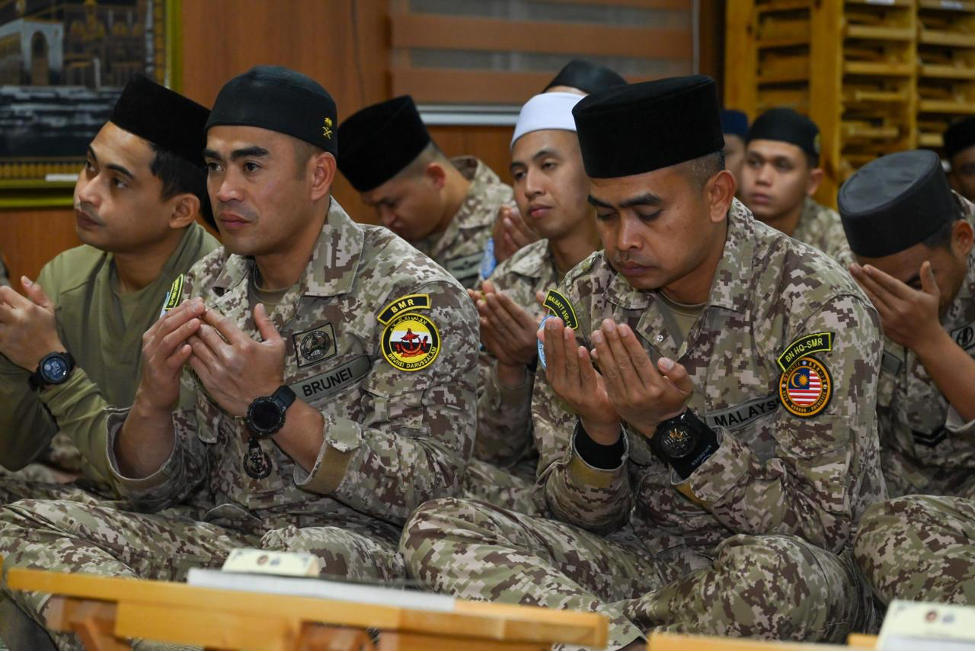 The ceremony reflects the strength of Islamic brotherhood and the spirit of cooperation between the MAF and RBAF, which extends beyond military duties and operations to include spiritual unity and shared prayers. Despite being entrusted with responsibilities abroad, members of MALBATT 850-13 remain steadfast in expressing their support, prayers, and loyalty to His Majesty the Sultan and Yang Di-Pertuan of Brunei Darussalam, seeking Allah Subhanahu Wata'ala's protection and continuous blessings upon His Majesty.