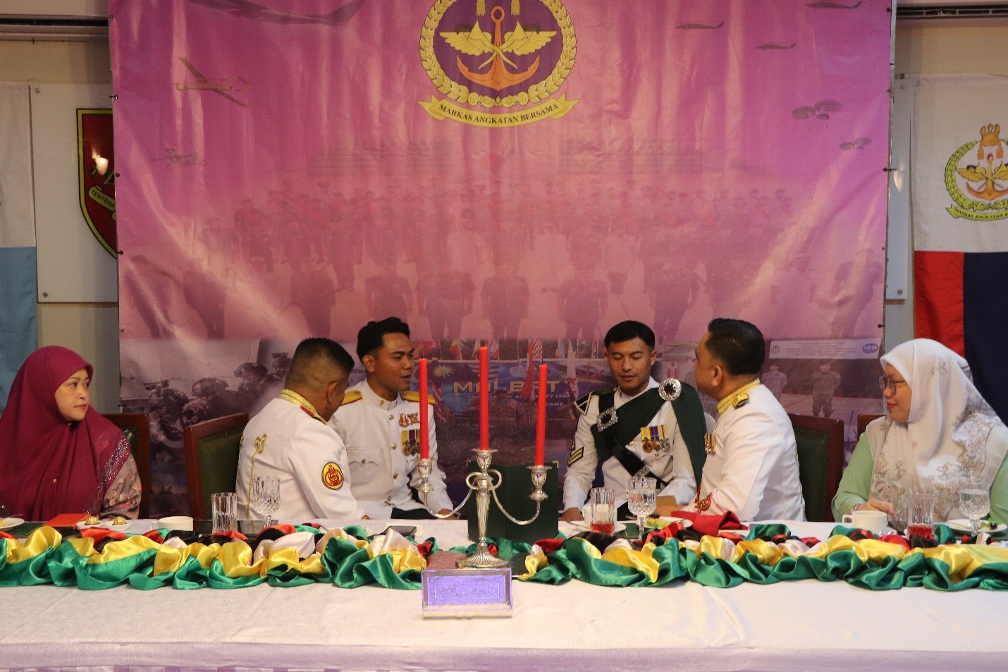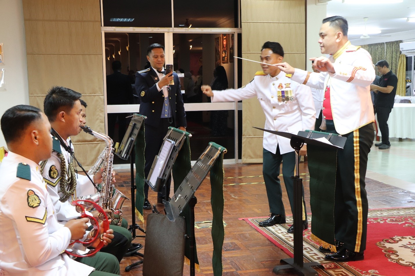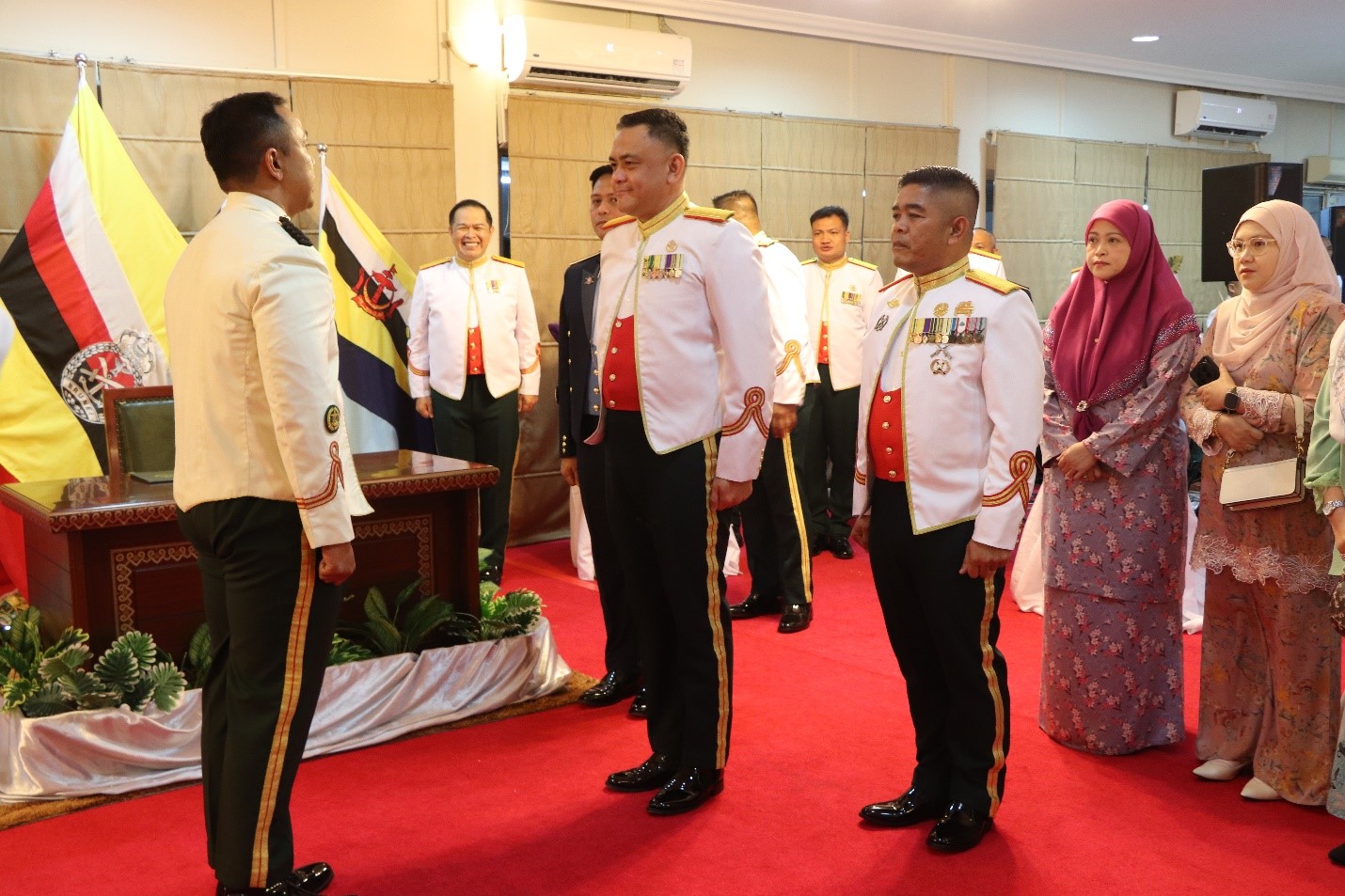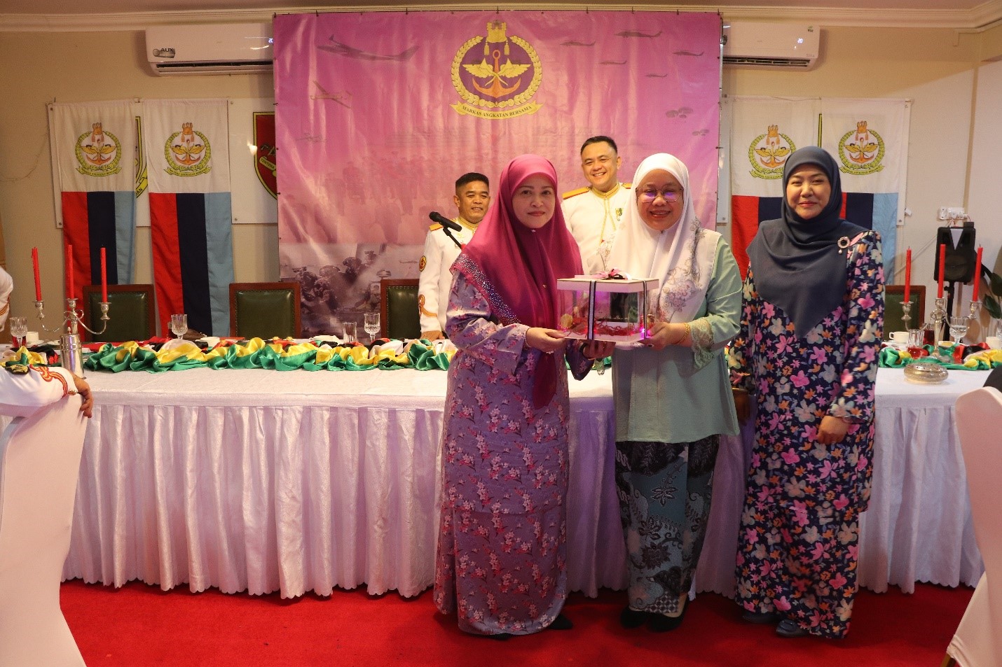 Present at the event was Warrant Officer 1 Sahrol bin Haji Omar, the former JF Sergeant Major, accompanied by his spouse. Also in attendance were Warrant Officer 1 Dino Irwandi bin Abd Rahim, the current JF Sergeant Major and spouse, warrant officers, Senior Non-Commissioned Officers (SNCOs) of the JF RBAF, and their respective spouses.