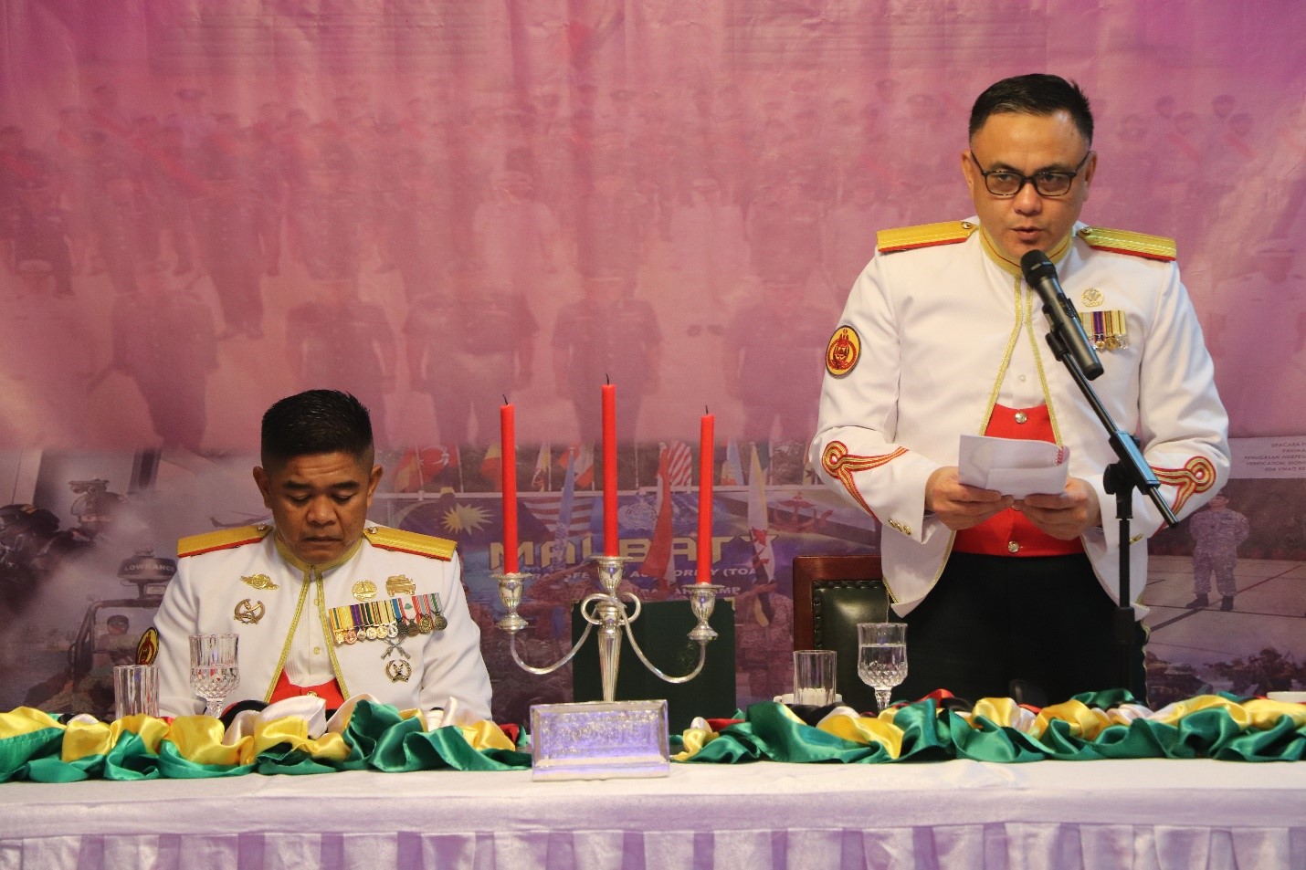 BERAKAS, Jumaat, 06 Februari 2026 – Seramai 94 anggota telah menghadiri Majlis Makan Malam Beradat bagi meraikan mantan Sarjan Mejar Angkatan Bersama, Angkatan Bersenjata Diraja Brunei (AB ABDB) diadakan di Mes Pegawai Waran, Staf Sarjan dan Sarjan, Berakas Garison.