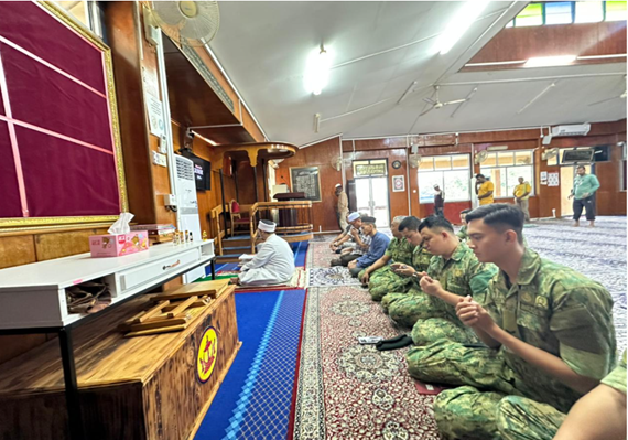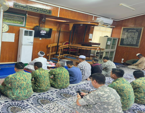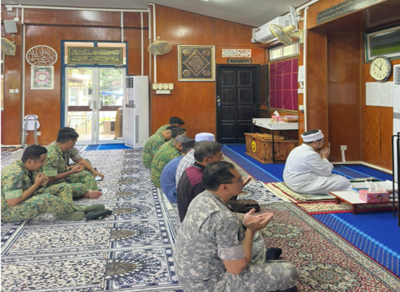 The delegation was led by Leftenan Colonel Pengiran Hamzah Pengiran Ahmad Damit, Staff Officer Grade 1 J1, JF RBAF. Also in attendance were officers and personnel from JF RBAF, who joined the local congregants for the Fardhu Zuhur prayer, followed by the Sunnat Ba'diyyah prayer.