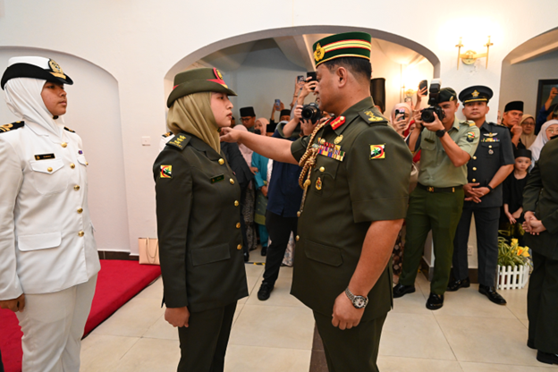 TIGA PEGAWAI ANGKATAN BERSAMA ANGKATAN BERSENJATA DIRAJA BRUNEI DINAIKKAN PANGKAT
