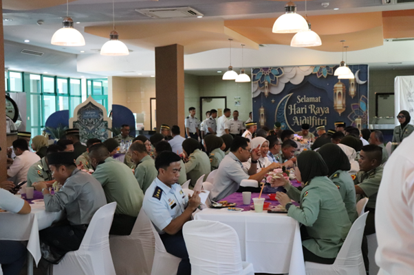 To further enliven the festive atmosphere, the event proceeded to a Hari Raya Aidilfitri celebration organised by the Joint Force at the Cafeteria, Ministry of Defence.