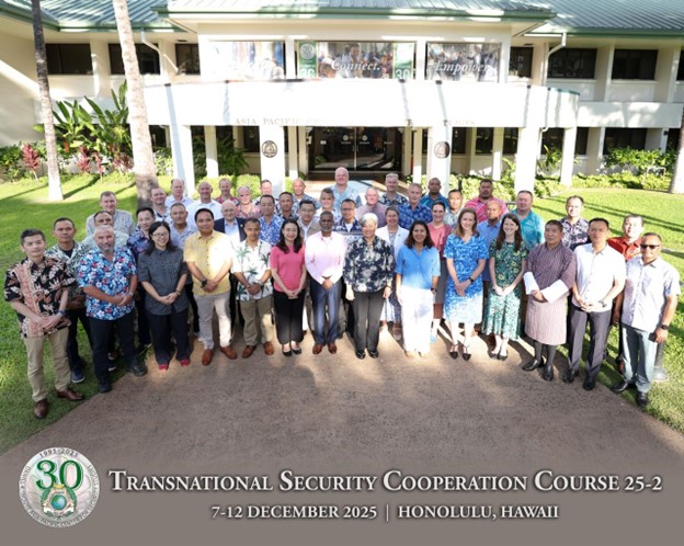 | TWO RBAF OFFICERS PARTICIPATE IN THE TRANSNATIONAL SECURITY COOPERATION COURSE IN HONOLULU, HAWAII. | HONOLULU, HAWAI'I, Friday, 12 December 2025 – Two officers from Royal Brunei Armed Forces (RBAF) and Ministry of Defence (MINDEF) participated in the Transnational Security Cooperation course (TSC 25-2) held at the Daniel K. Inouye Asia-Pacific Center for Strategic Studies (DKI APCSS) from 7 to 12 December 2025 in Honolulu, Hawaii. The course was also participated by 40 Senior Executive course participants from 24 countries and 2 international organisations from across the Indo-Pacific region.